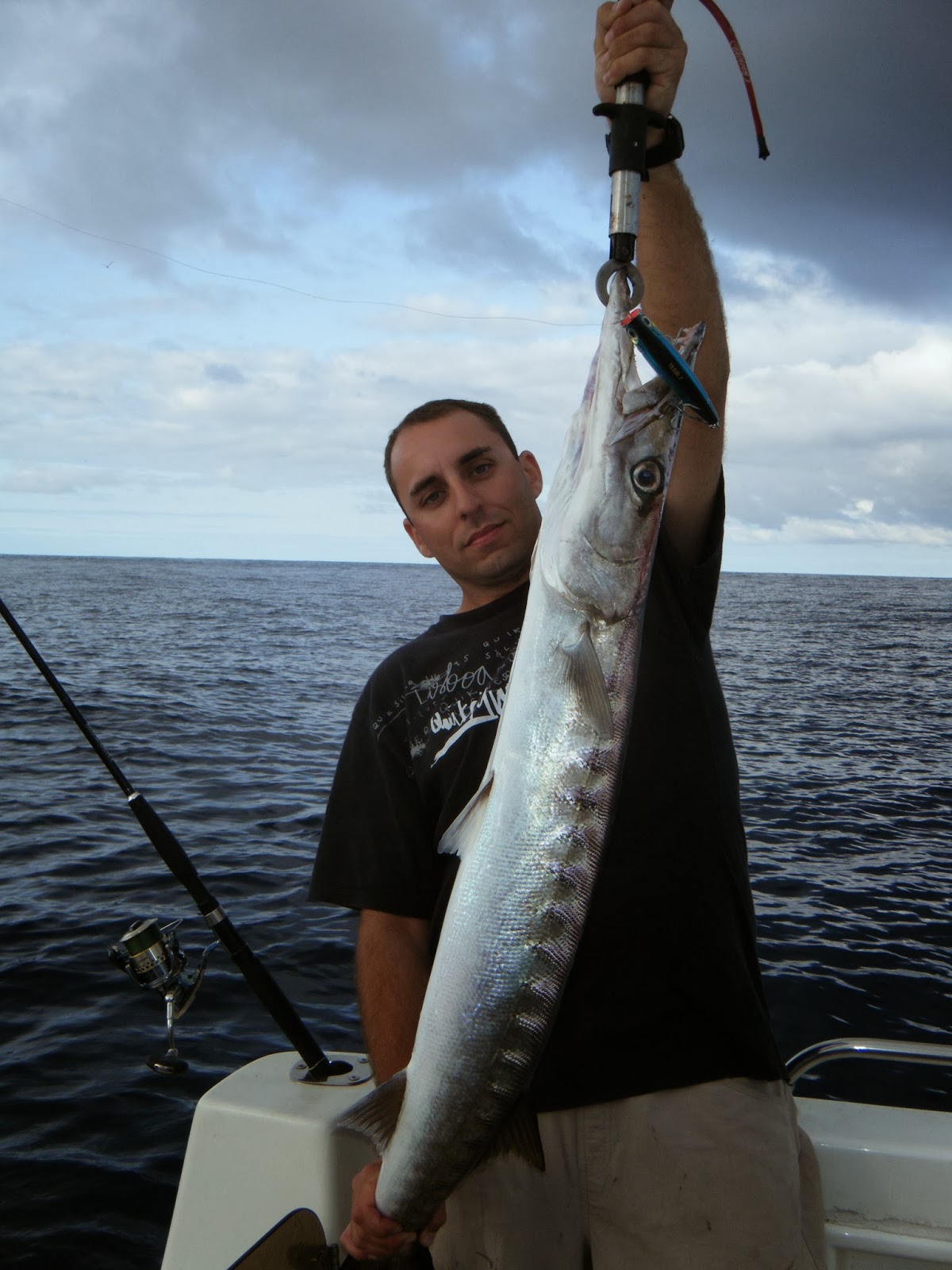 Outro aspecto muito gratificante é introduzir novos amigos à pesca com amostra, e não há nada melhor que começar com um bom exemplar, que foi exactamente o que fez o meu colega e amigo Pedro Catarino, com o seu primeiro peixe apanhado à amostra...